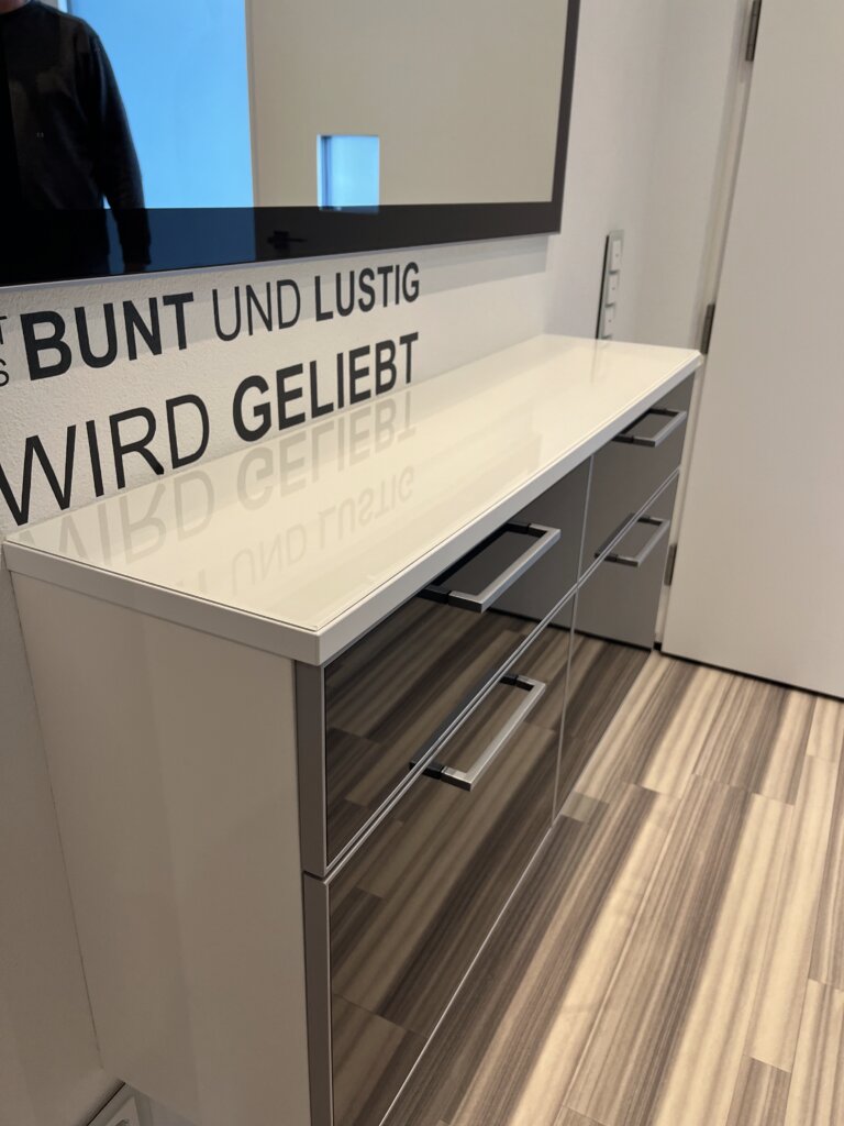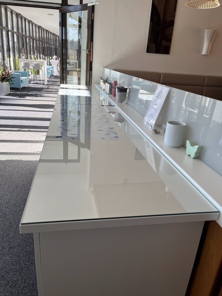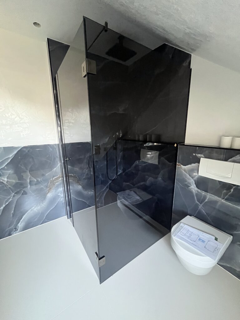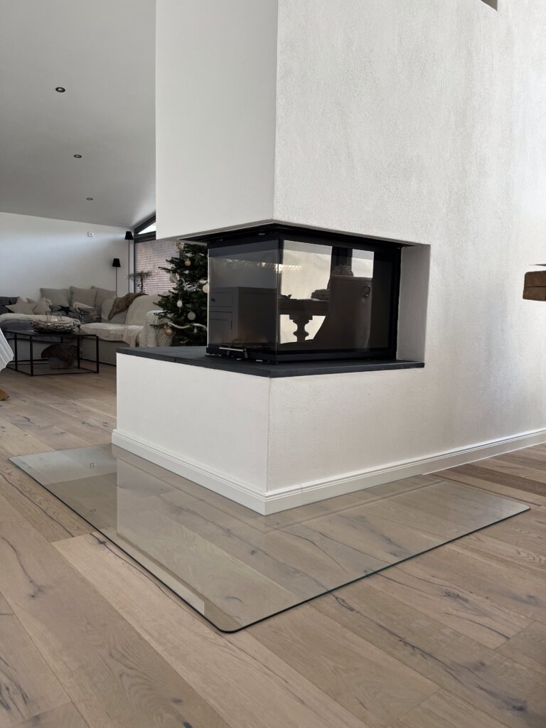 Auf Wunsch kombinieren wir das Glas mit Folierungen, Satinierungen oder dezenten Designs, die Privatsphäre schaffen, ohne die Lichtdurchflutung zu beeinträchtigen. So entstehen funktionale, stilvolle Räume mit klarer Struktur und ästhetischem Anspruch – ideal für moderne Innenarchitektur.