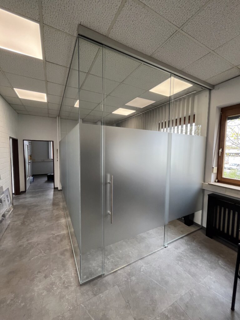Ob im modernen Büro, in der Praxis oder im privaten Wohnbereich – Glastrennwände sorgen für Transparenz, Ruhe und eine angenehme Raumakustik. Wir planen jede Anlage individuell und setzen sie mit höchster Präzision um. Dabei kommen ausschließlich Sicherheitsgläser zum Einsatz, die Stabilität und Langlebigkeit garantieren.